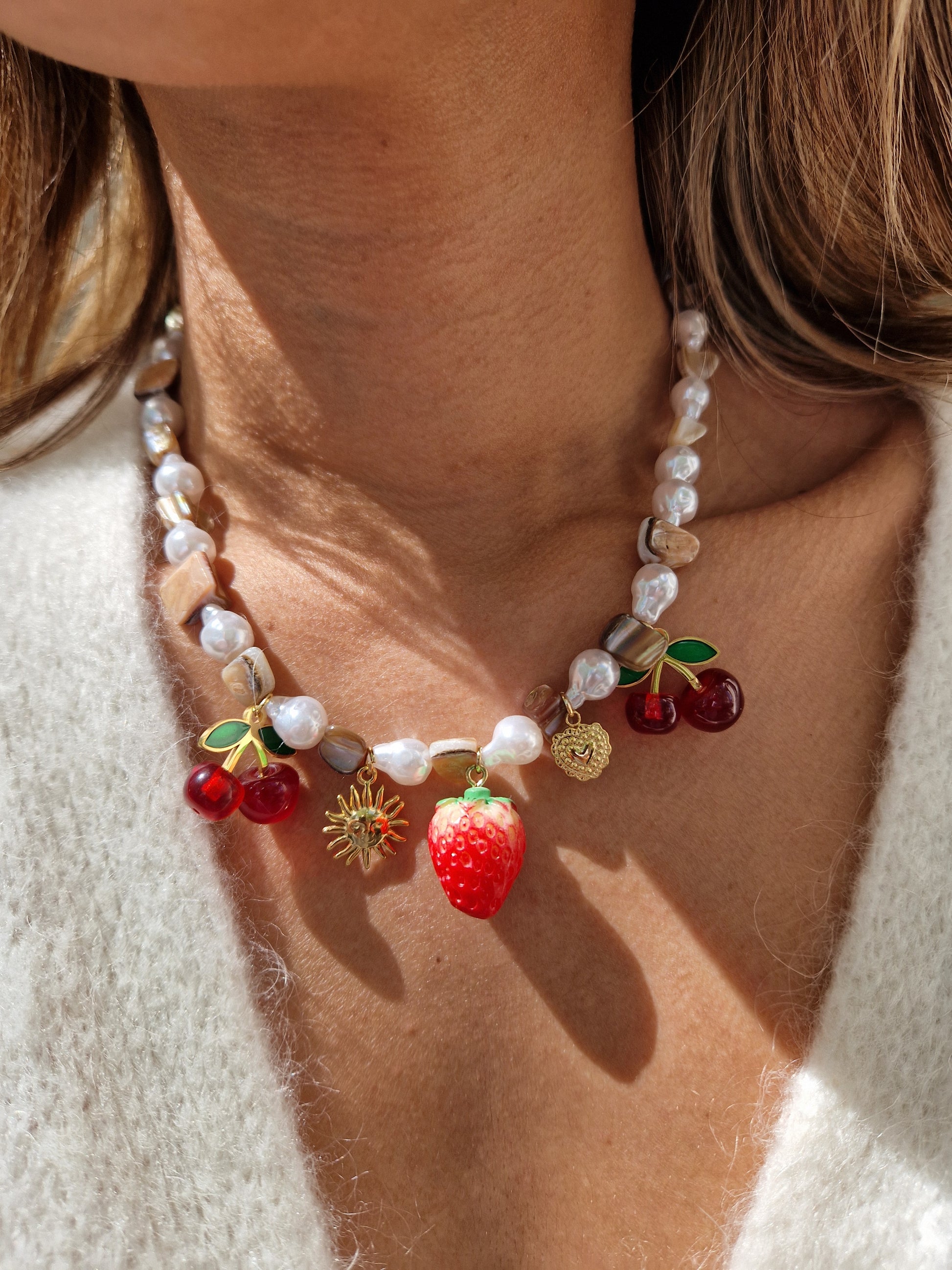 Un brin rétro et résolument gourmand, ce collier en acier inoxydable s’habille de charms cerise et fraise, ponctués de petites perles qui ajoutent une touche de fraîcheur. Léger et acidulé, il apporte une note enjouée à n’importe quelle tenue, tout en résistant au temps grâce à sa composition durable.