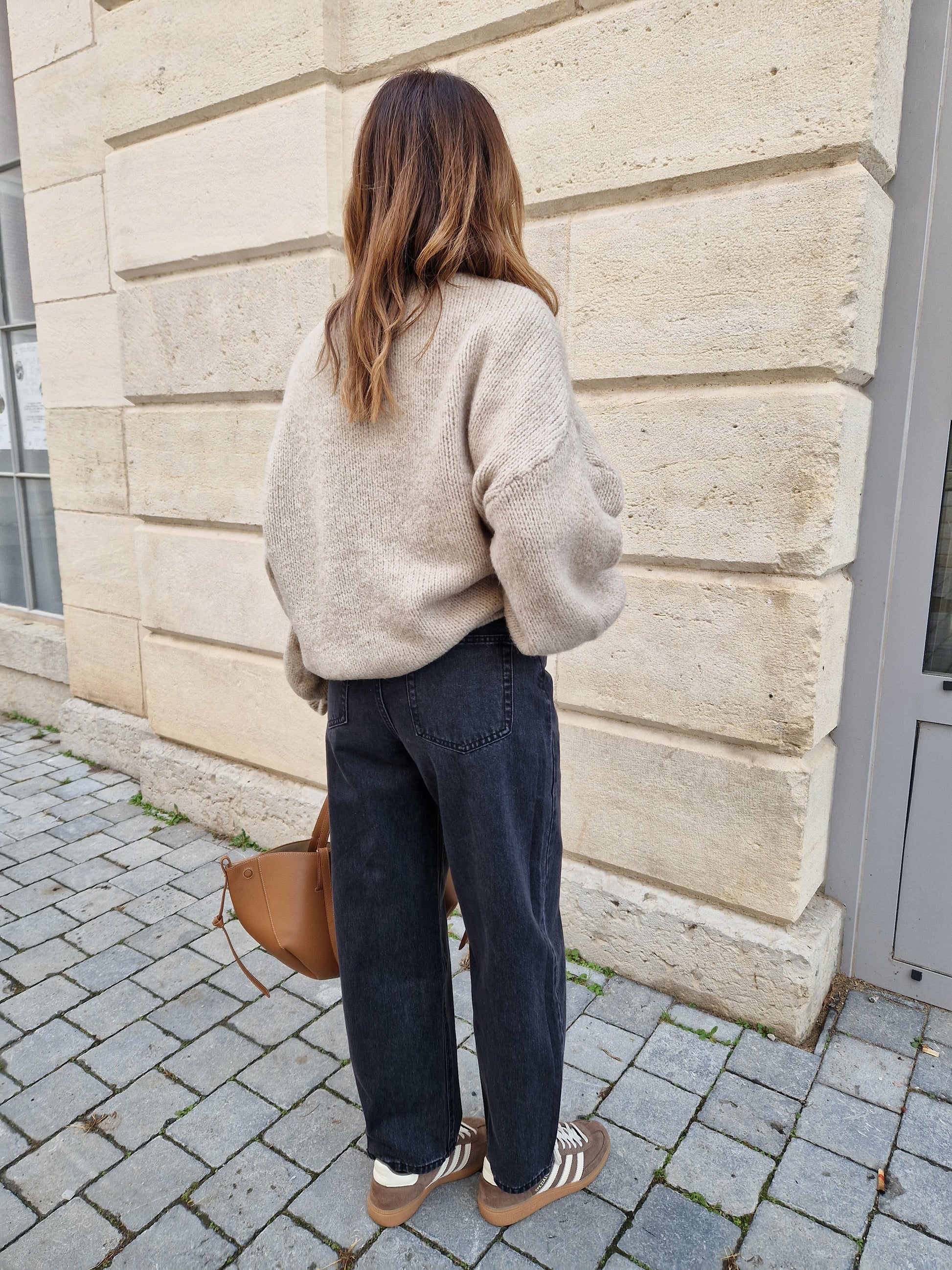 Ce jean barrel gris foncé apporte une touche moderne avec sa coupe arrondie et son volume confortable. Facile à porter au quotidien, il se pose parfaitement sur la taille et crée une silhouette tendance sans effort.